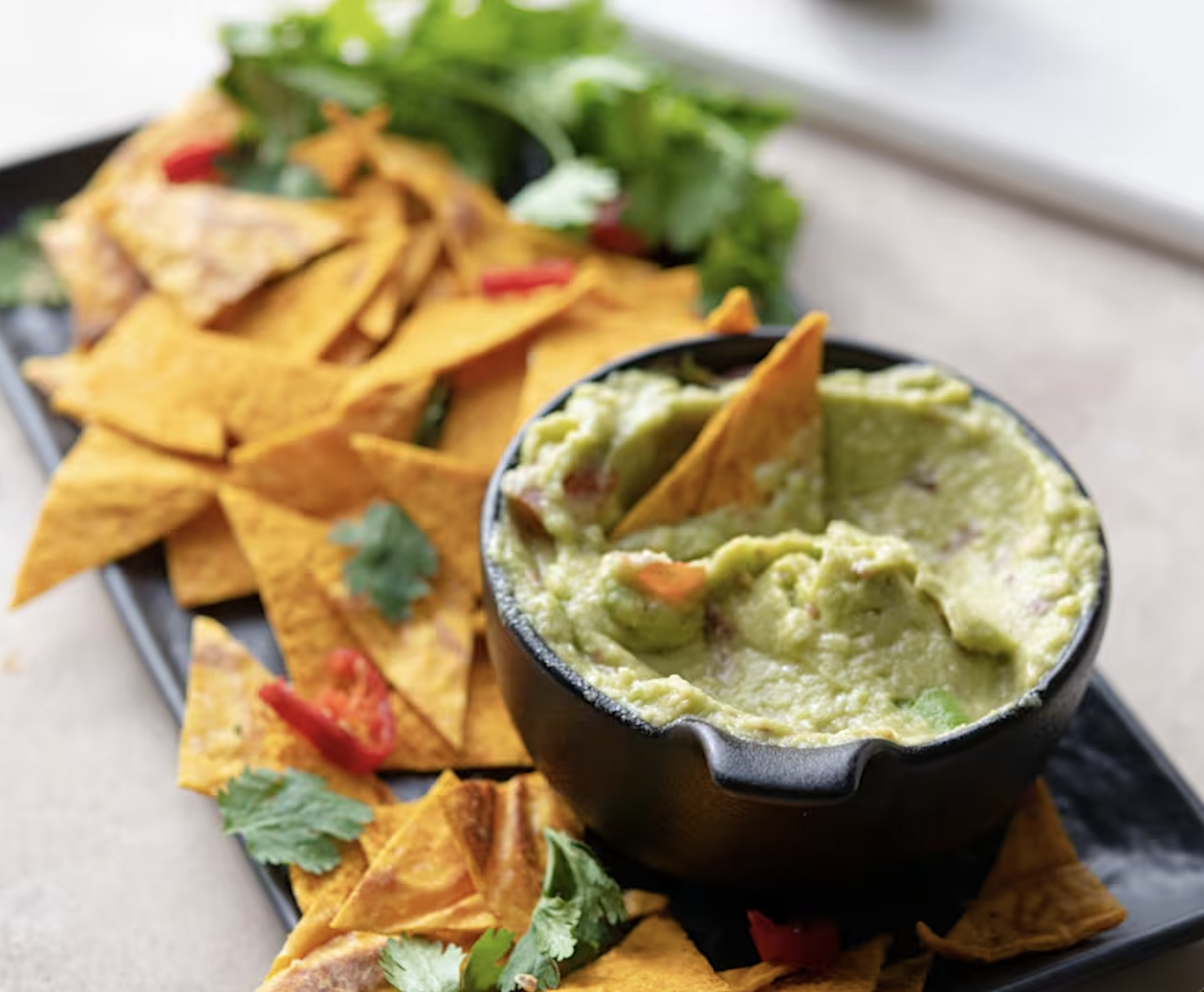 İsteğe bağlı olarak sarımsak da eklenebilir. Bu sos özellikle cips ve tortilla ile mükemmel bir uyum sağlar.
